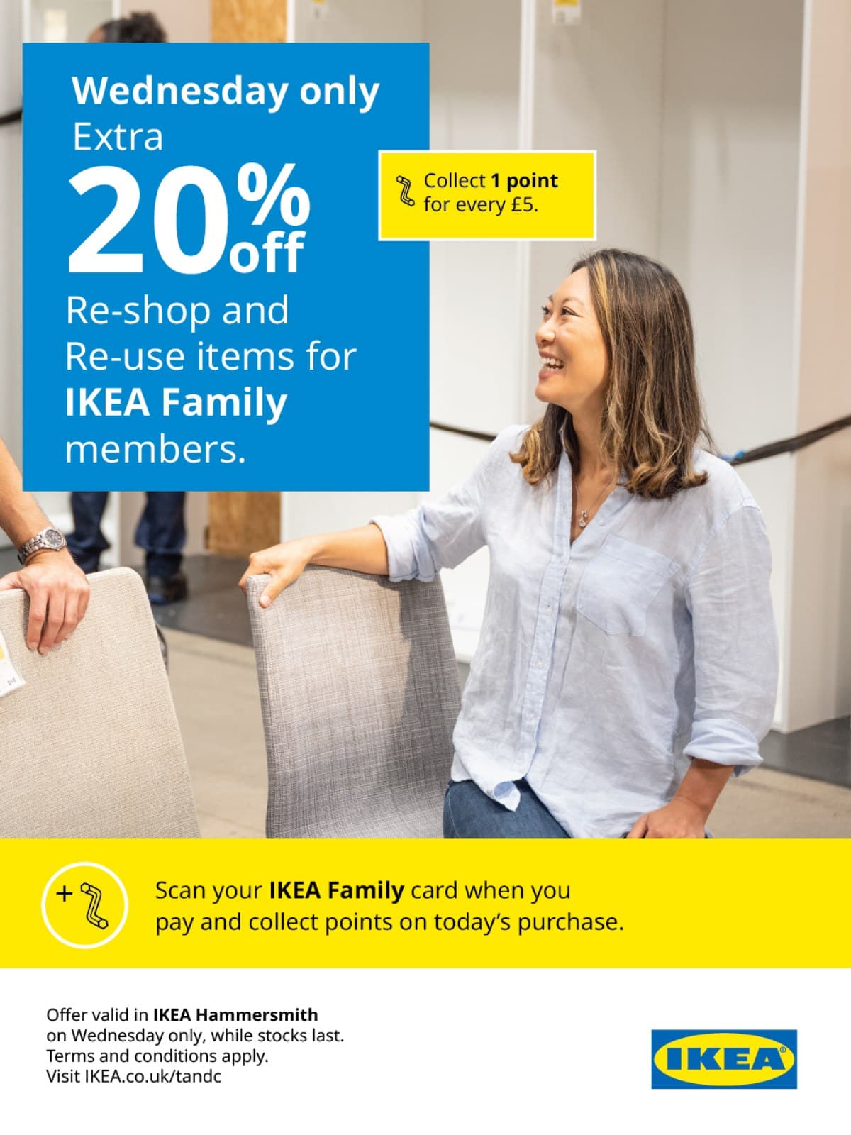 Every Wednesday between 4 February - 31 August 2026, IKEA Family customers will receive an EXTRA 20% OFF Re-shop and Re-use items