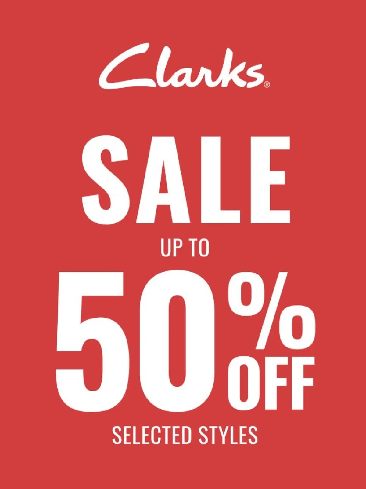 Clarks sale NOW ON! Shop up to 50% off in-store today!