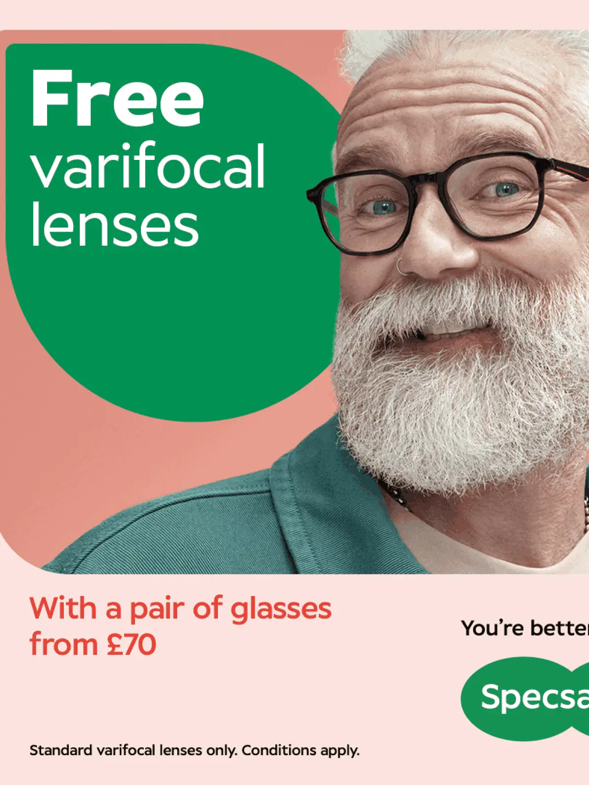 If you need glasses to see close-up and far away, varifocals are the answer. At Specsavers Livat Hammersmith, you can get varifocal lenses free when you buy a single pair of glasses from their £70 range and above.