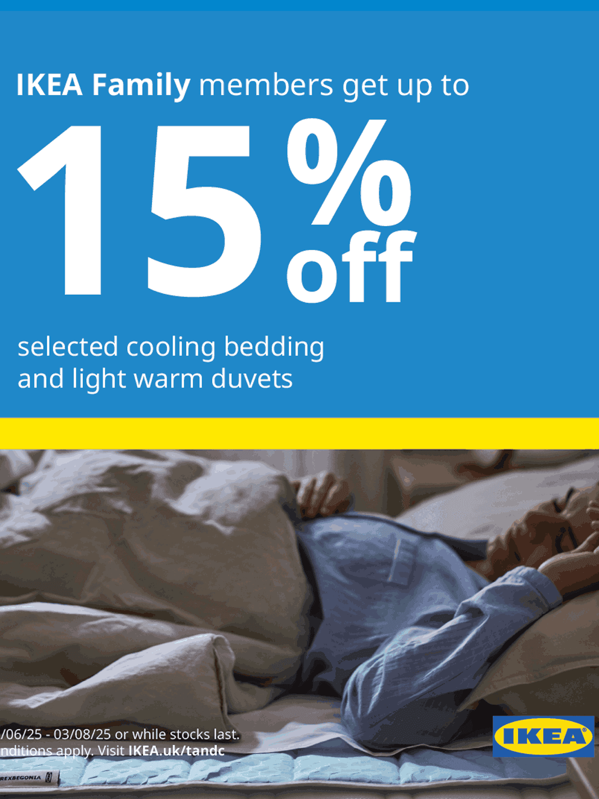 IKEA Family members can receive up to 15% of selected cooling bedding and light warm duvets, so why not fluff it up, snuggle in, and stay cosy. Our bedding range has got you covered, from soft sheets to warm duvets and pillowcases that hug you right and oh-so-cosy, just the way it should be.