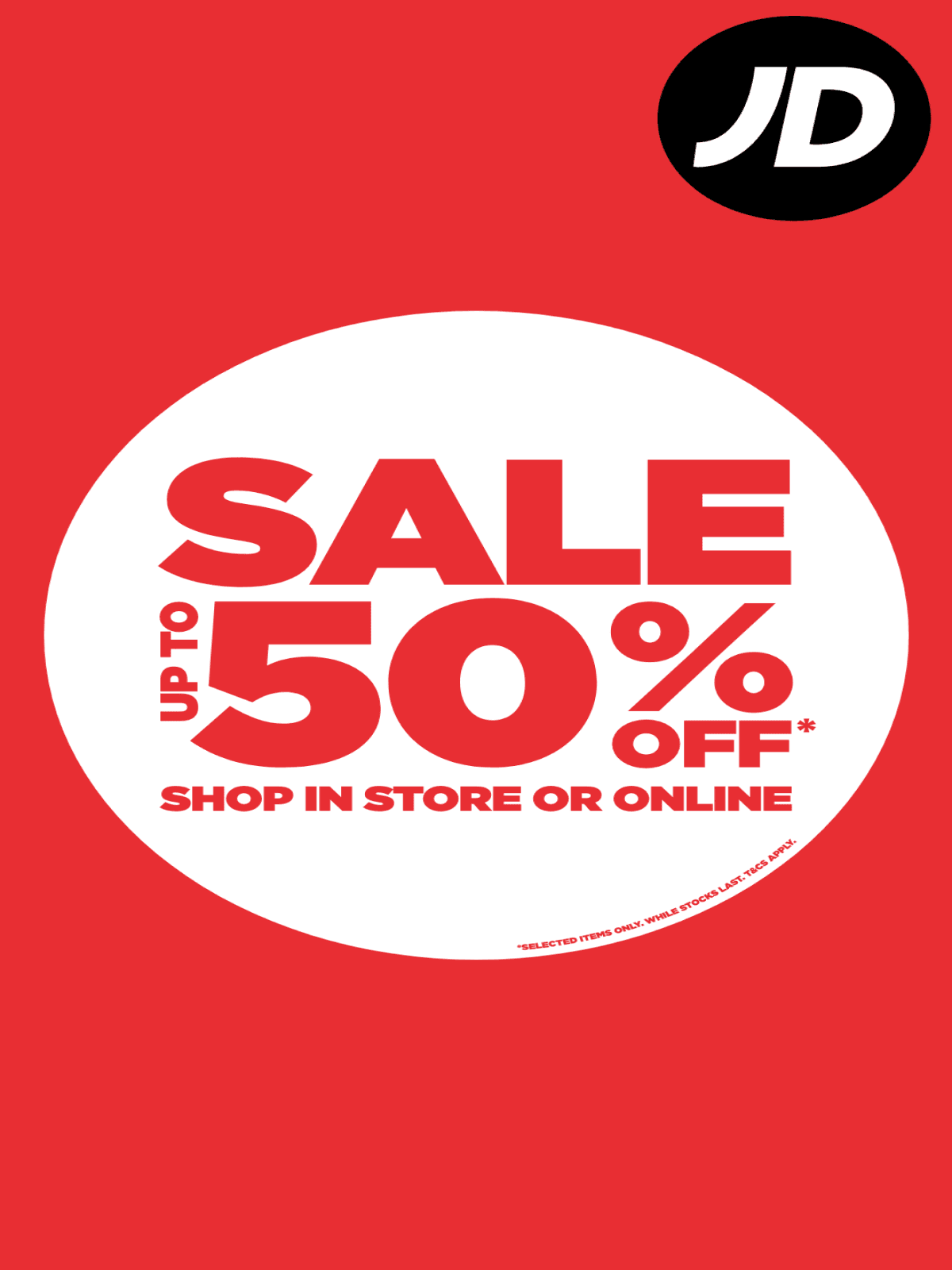 Unmissable offers have hit in JD Sports’ SALE! Get up to 50% off your favourite brands with savings on men’s, women’s and kids’ sizes. Shop them in-store today!